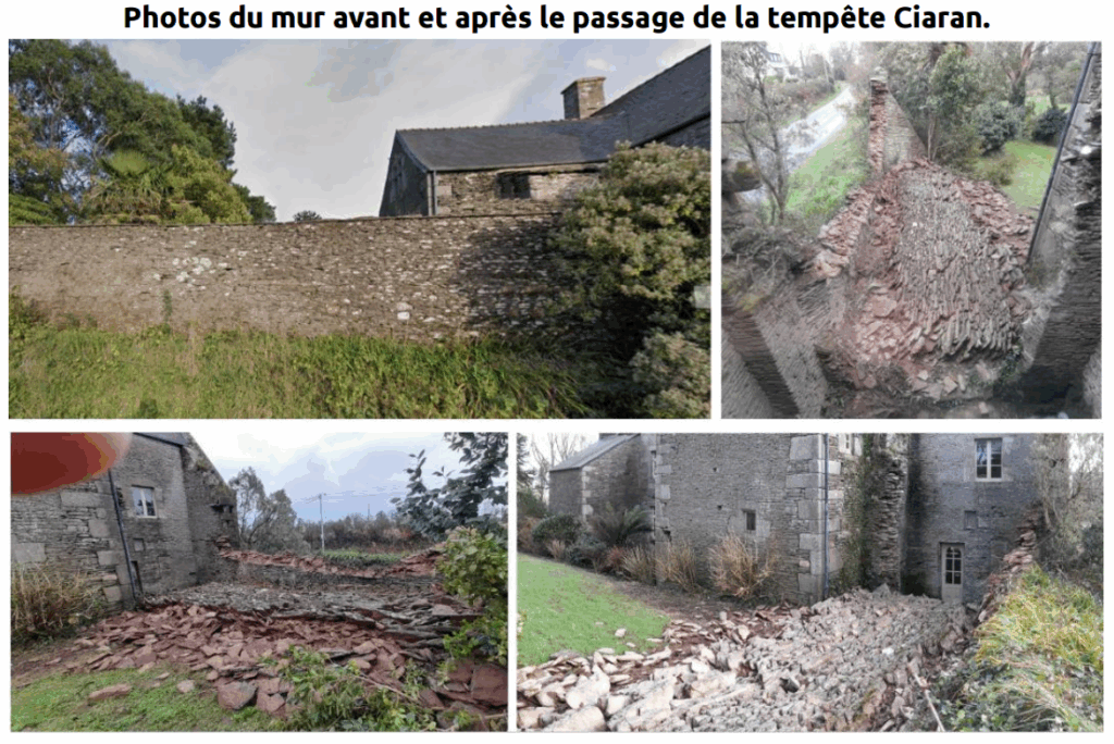 Réparation du mur d’enceinte détruit par la tempête Ciaran (2026)