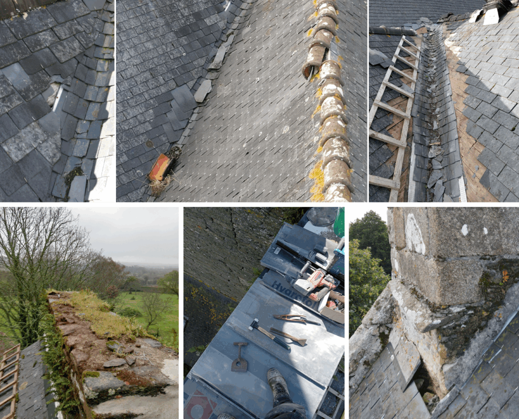 La toiture des communs avait subi des dégâts importants lors de la tempête Alex, il a fallu refaire une nouvelle charpente (en chêne) et une couverture en ardoises (cloutées cuivre). Travaux soutenus par la DRAC.